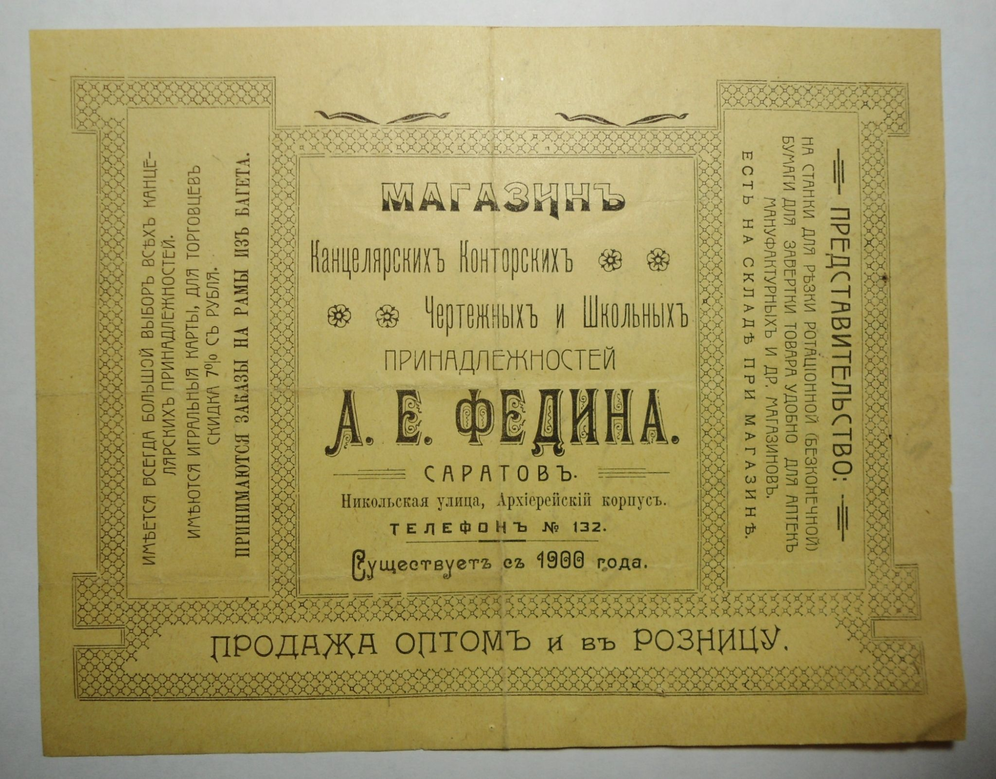 Писче-бумажный магазин А.Е.Федина и В.И.Покровского