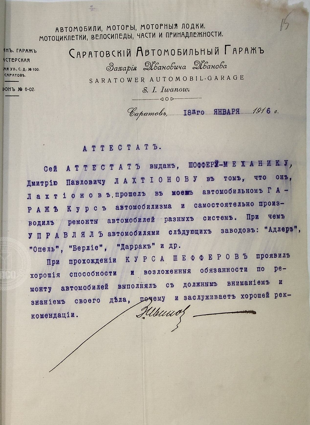 В 1915 году в здании гаража открылись автомобильные курсы по подготовке военных водителей. После революции в гараже работала автошкола, а бывший хозяин гаража З.И. Иванов был в ней сначала преподавателем, а потом заведующим. Но вскоре здание гаража перешло в распоряжение другого ведомства, которое устроило в нем магазин "Электротовары".