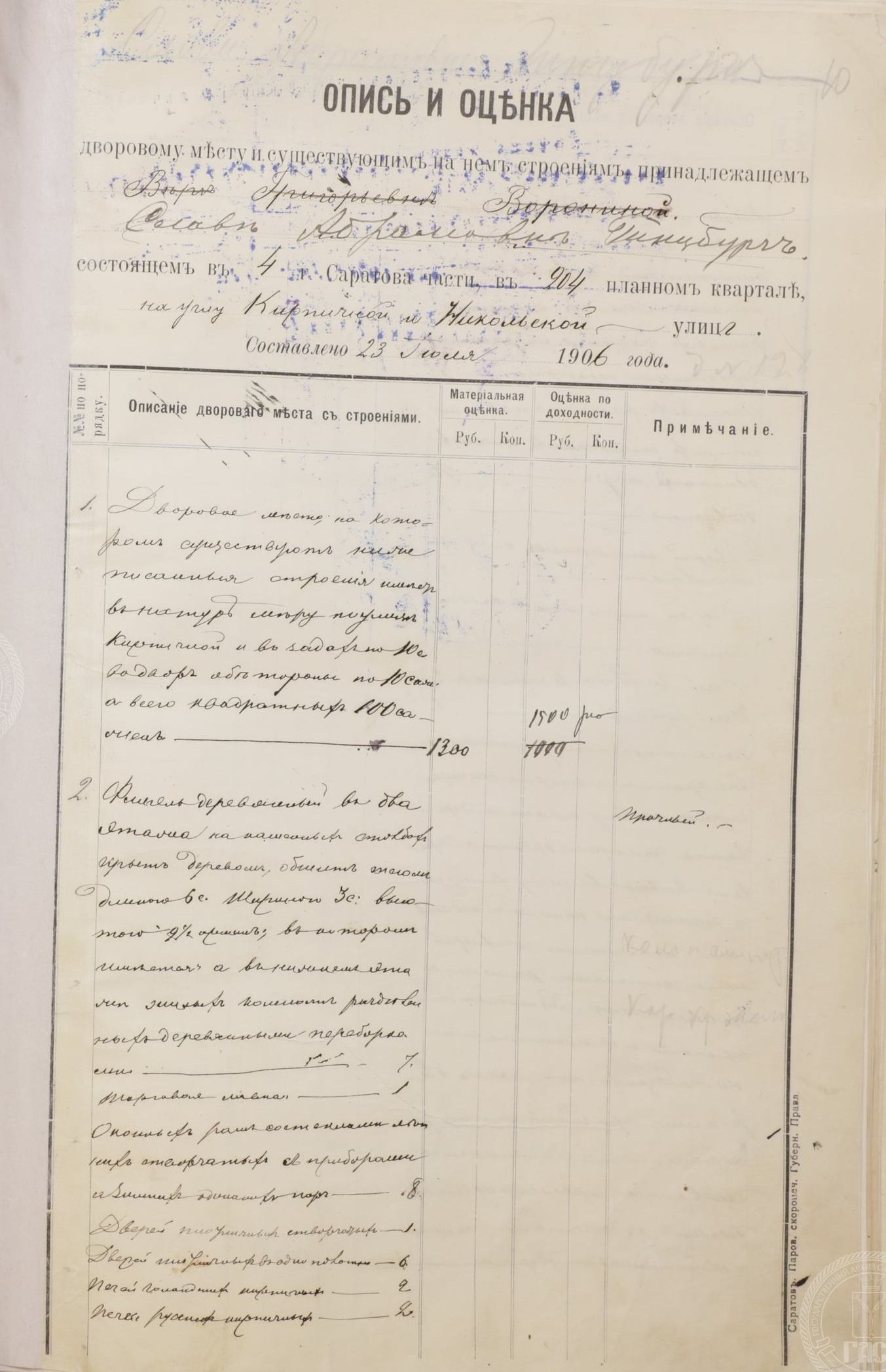 Домовладение Веры Григорьевны Ворониной, перешло Славе Абрамовне Гинцбург.