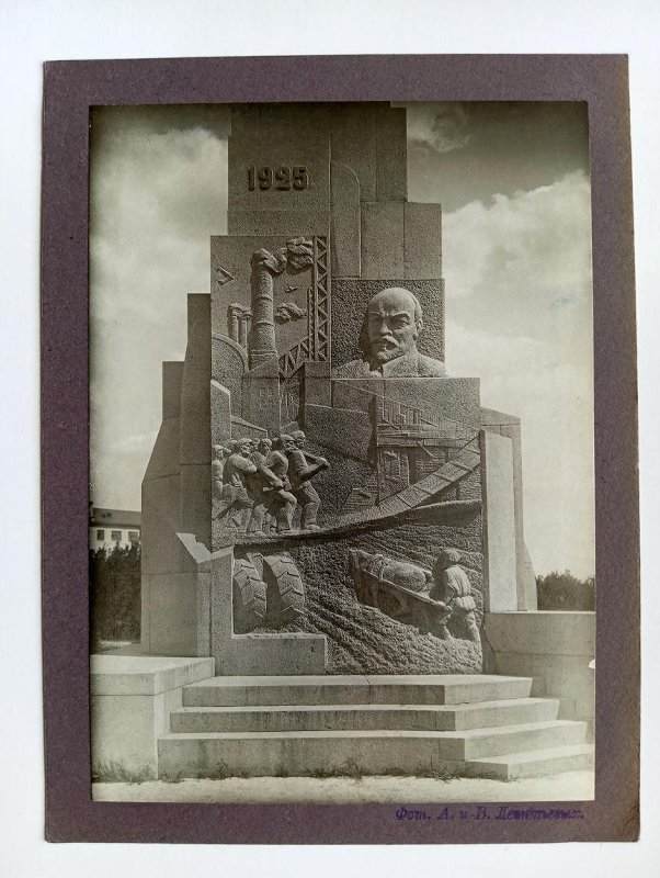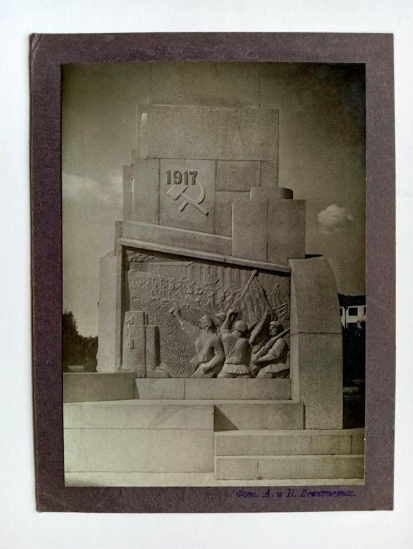 На госкаталоге появился ещё один вариант этой фотографии (https://goskatalog.ru/portal/#/collections?id=62912433). Плюс ещё три фотографии: отдельно скульптуры до установки, а также постамента с разных сторон.
