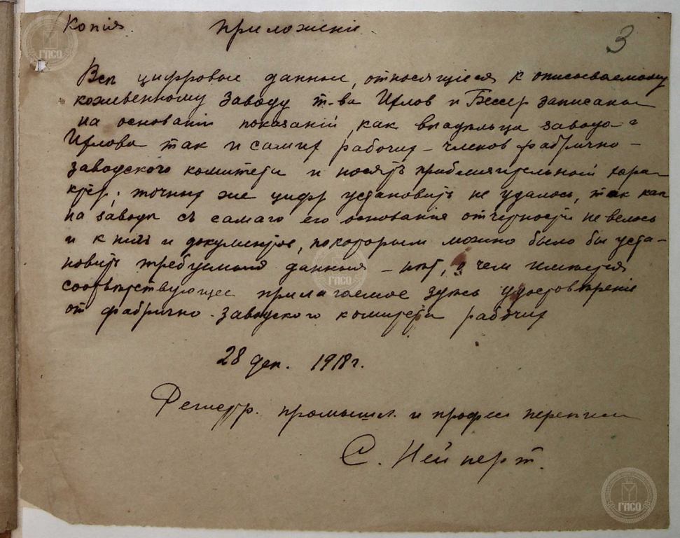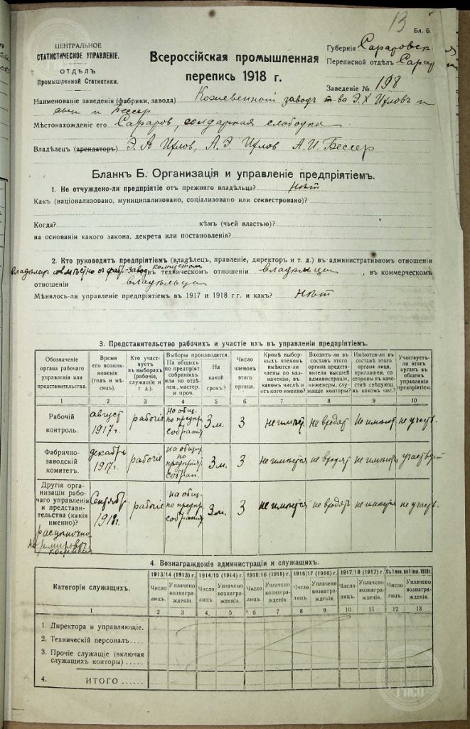 1918 год. перепись . завод товарищества "Э.А. Ихлов и сын и Бессер"