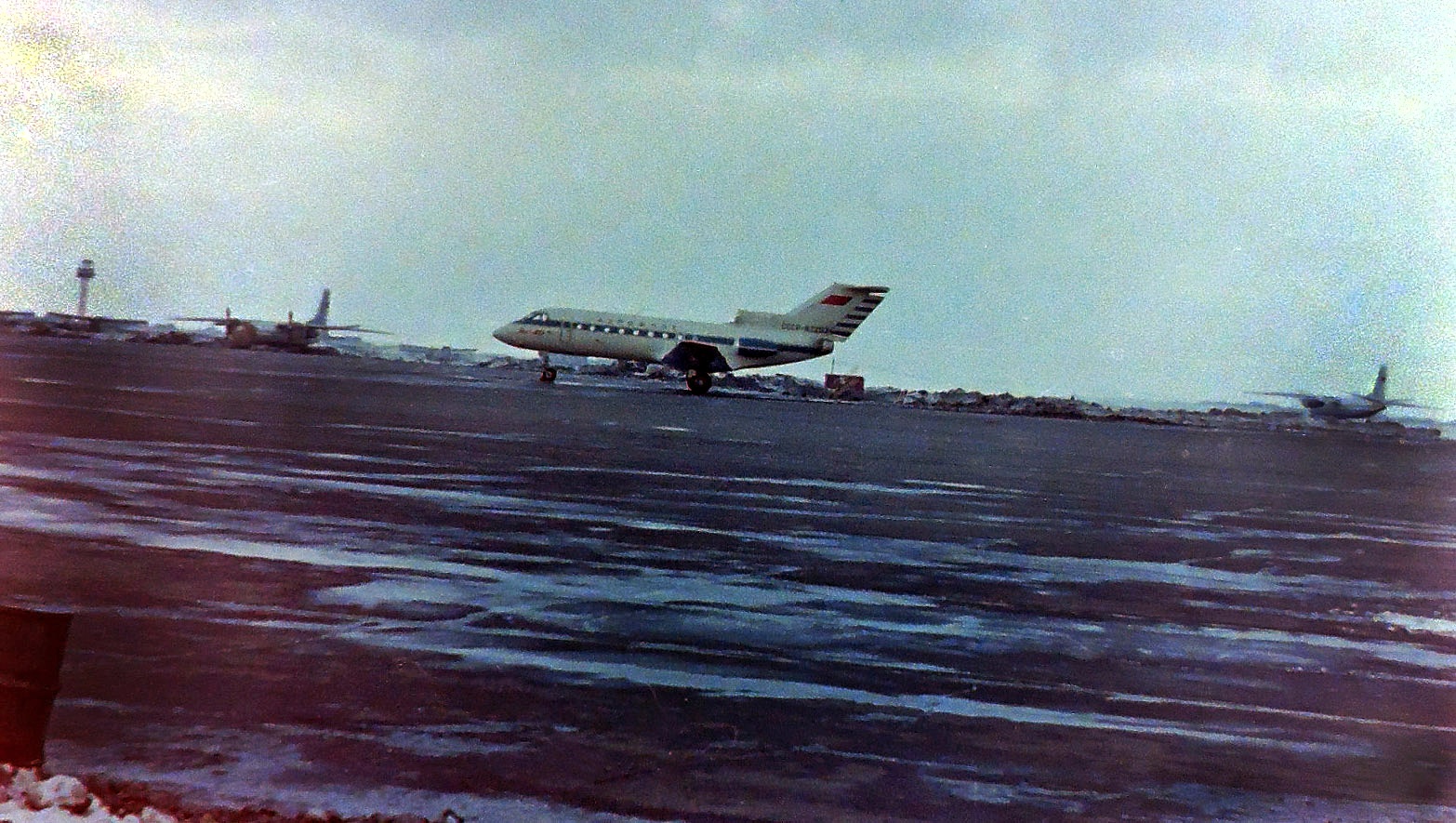 От Полёт-2 традиционный путь можно сказать), мимо гаражей во втором ряду, через перекусанную колючку кому в сторону 10-12, через штурманскую, если вниз в район 73 шк, мимо КРМ поближе выходило. В тёплое время хорошо возвращаться, а зимой на поле ветрено бывает.. Как то по пути транзитный Як-40 стоял, но порывы ветра и ближе не стал подходить, снял издали. Да и фото вышло так себе..ни цвет ни резкость.
