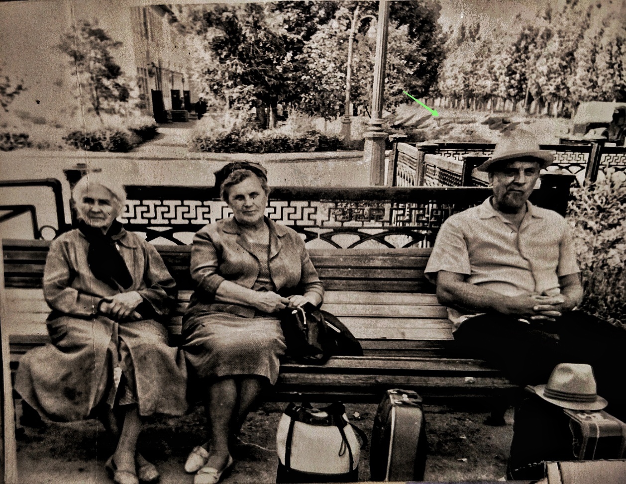 Слева ворота в кадре почти всегда немного прикрыты были. Столовая или позднее Кулинария работает по моему, под вывеской дверь открыта. Через вход в любой подъезд, можно было пройти насквозь во двор этого дома. Такой же ГАЗ-69 был в 1969г в автобазе аэропорта, водитель Шевчук Вячеслав.