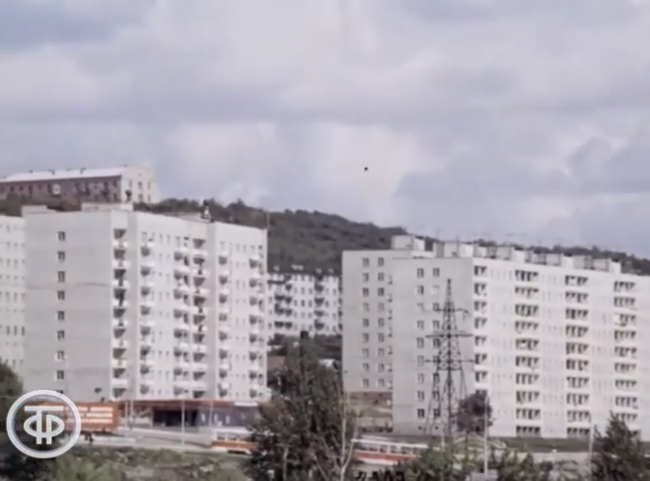 здание аэропорта немного с антенной/флагштоком вверху, школа 73 и ряд гаражей повыше, между девятиэтажками на Высокой, по моему старый детский сад виднеется и новое здание садика также в кадре, напротив д.16