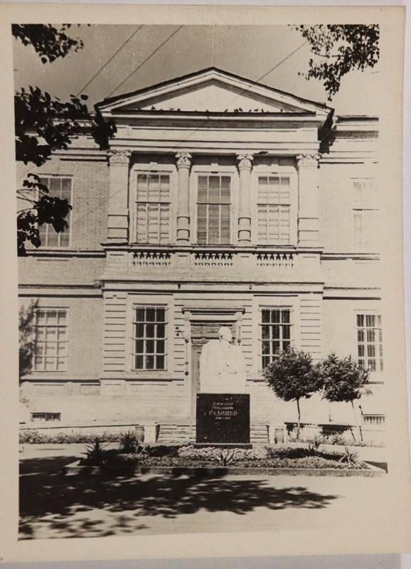 Бюст Радищева, который (в разных материалах) был установлен у входа в музей им. Радищева с 1971 по 1974 гг. Фото Вдовенко Б.Е., из архива Тверского краеведческого музея.