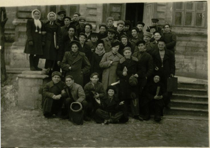 Художник Штокало В.А. - студент 1-го курса Саратовского художественного училища с однокурсниками у Радищевского музея (1948-1949)