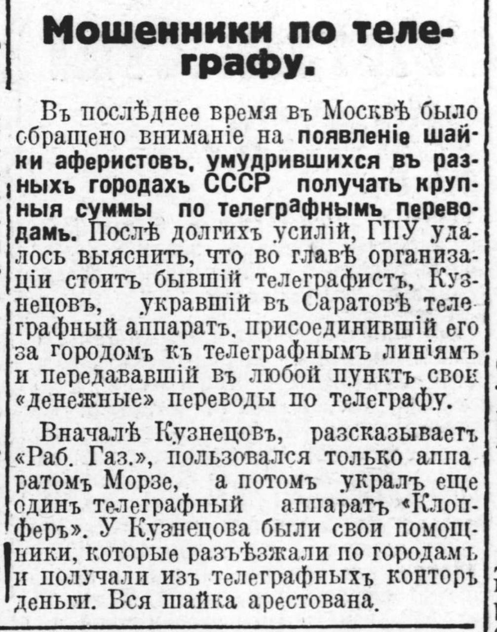 Бандитские налеты продолжались. Были ограблены: магазин, находящийся на углу Пушкинского переулка и улицы Железнодорожной, колхозники, везущие рожь из Чардыма в Саратов, склад Маслопрома в Пензе, колбасная райсельпо по ул. Хвалынской, учебный комбинат Дорстроя, литография на Большой Казачьей улице, из которой преступники унесли 300 бланков хлебных карточек.