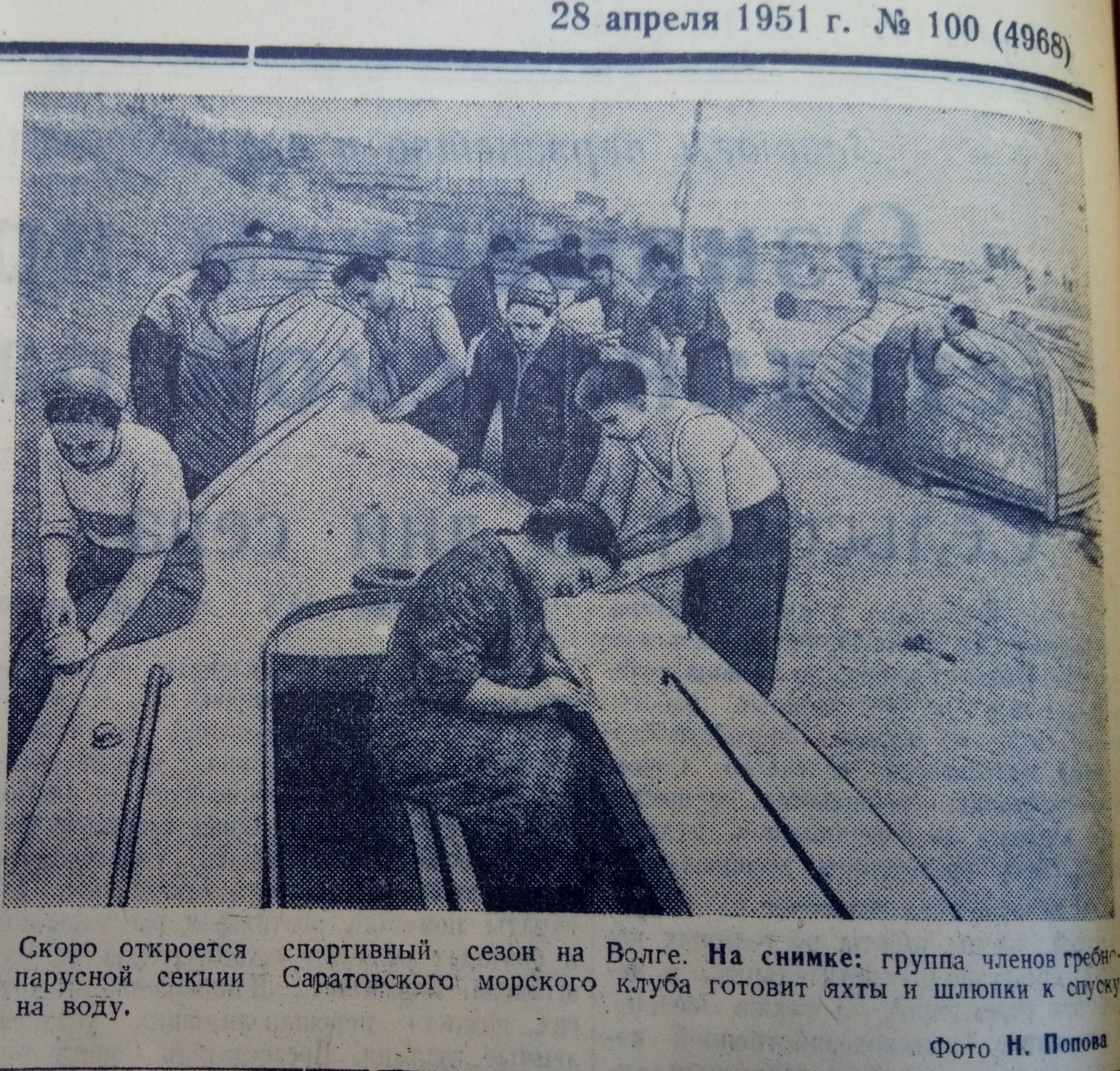 У Дегтярного взвоза в Саратове сотрудники консерватории А. Симонов и Г. Волчков готовят лодку перед началом навигации. За костром и смолой следит железнодорожник И.Н. Тезиков