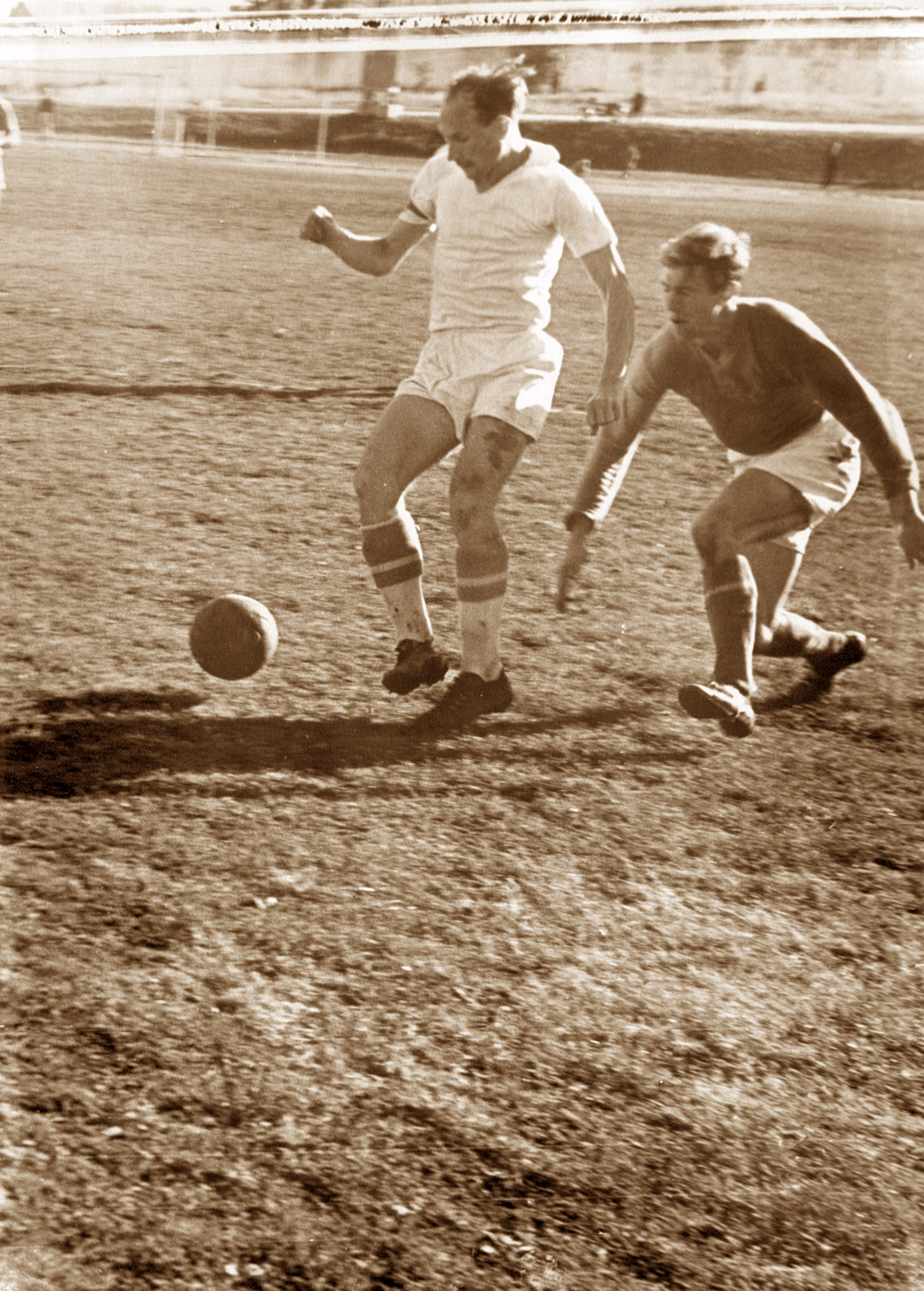 1957-й год. Момент игры, с мячом Анатолий Глинский.