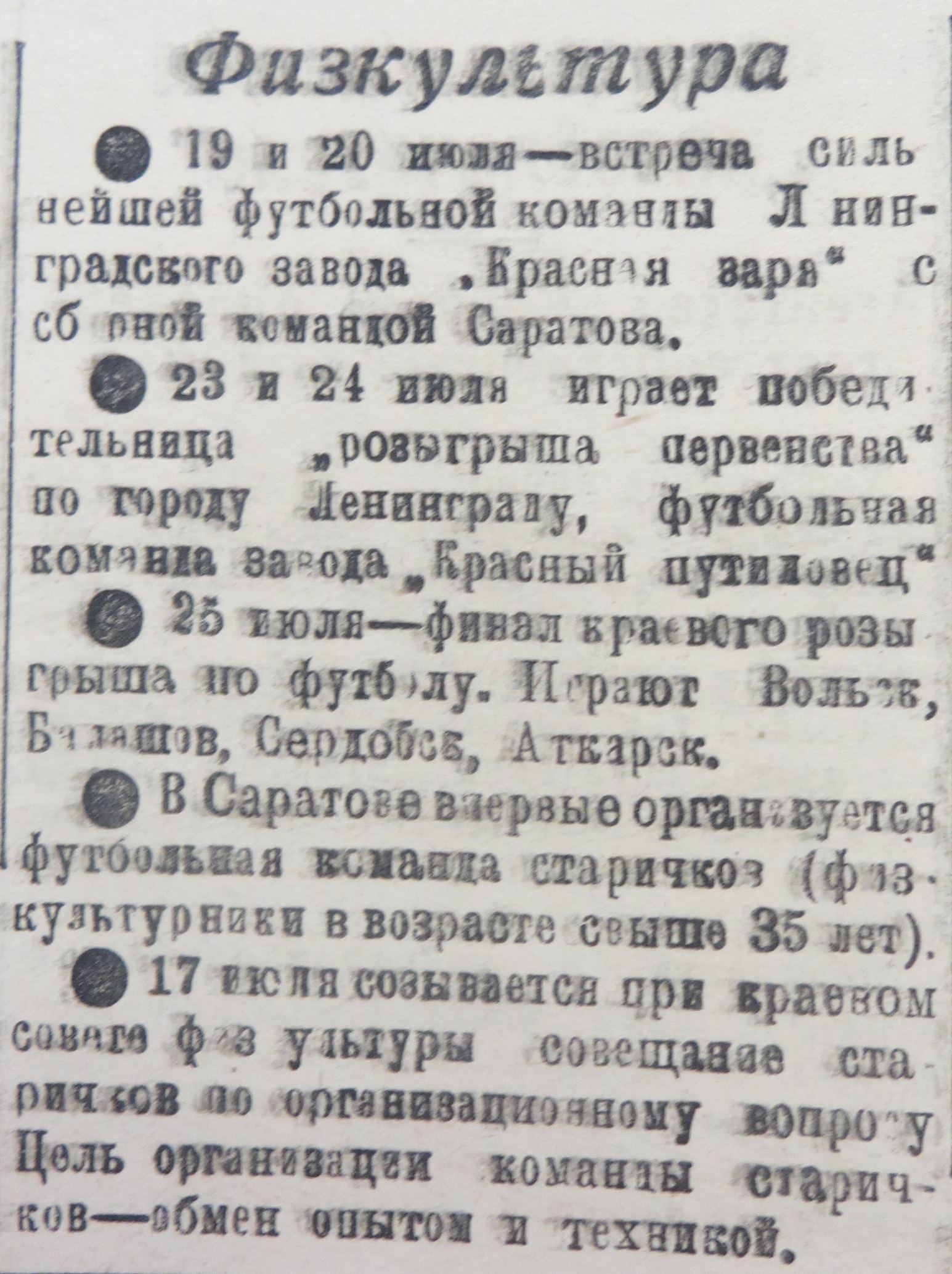Добавляю сюда ещё одно фото юношей "Спартака" и вырезку из газеты, где перечислены фамилии футболистов. Обратите внимание, что День физкультурника тогда праздновался в июле, а не в августе.