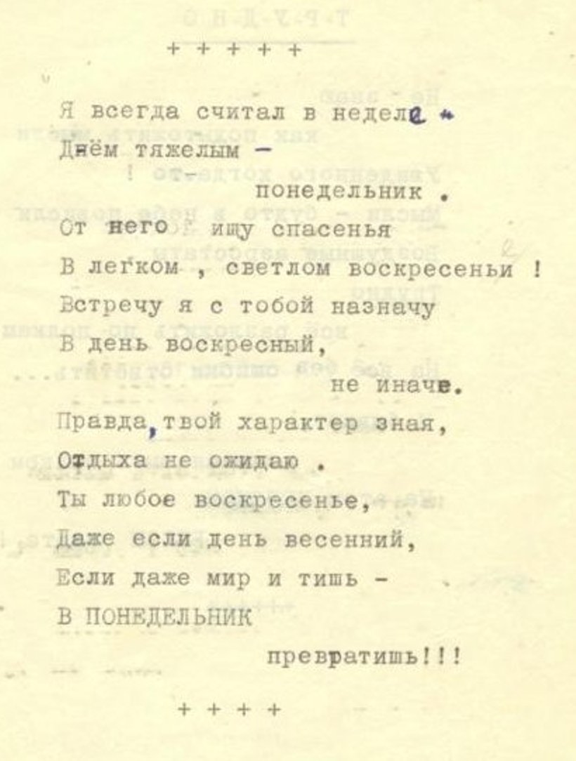 Из коллекции материалов о Горелике Льве Григорьевиче (1928–2012) - Народном артисте России (1982), художественном руководителе эстрадно-сатирического театра "Микро" при Саратовской областной филармонии, Почетном гражданине г. Саратова (1997) Стихотворение "Я всегда считал в неделе".