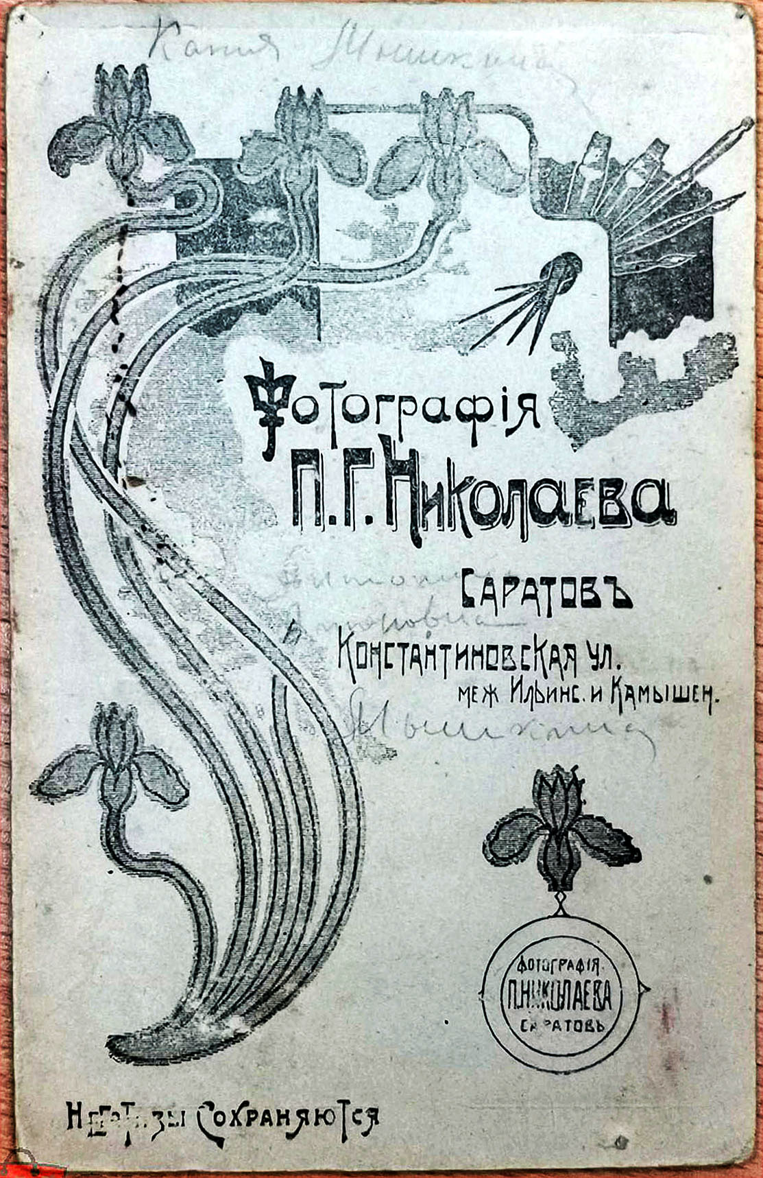 «Художественная фотография» фотоателье П. С. Егорова. Портрет Екатерины Ионовны Камзоловой (Тищенко)