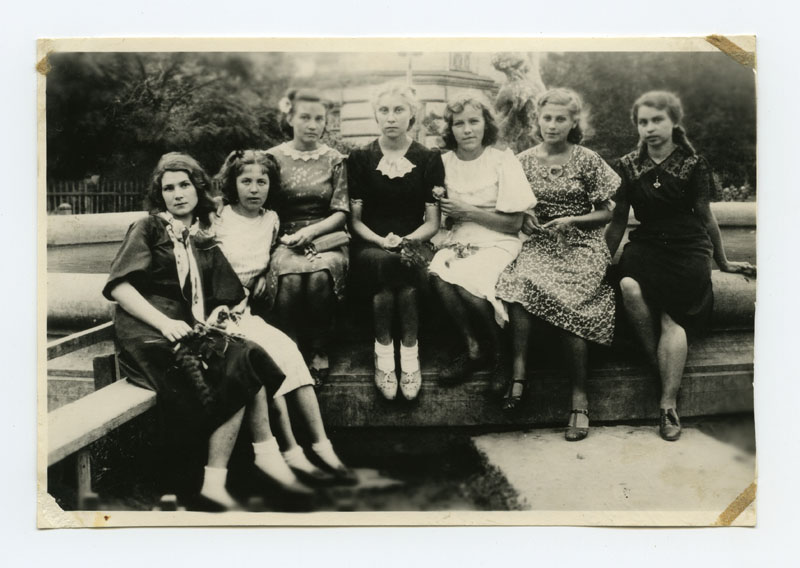 Второкурсницы. Сидят в первом ряду (слева направо): Елена Трепак, Александра Иванова, Ада Чугунова, Клара Кислухина. Во втором ряду (слева направо): Людмила Бессарабова, Раиса Душина, Дора Уман, Юлия Каганович, Зоя Здорова.