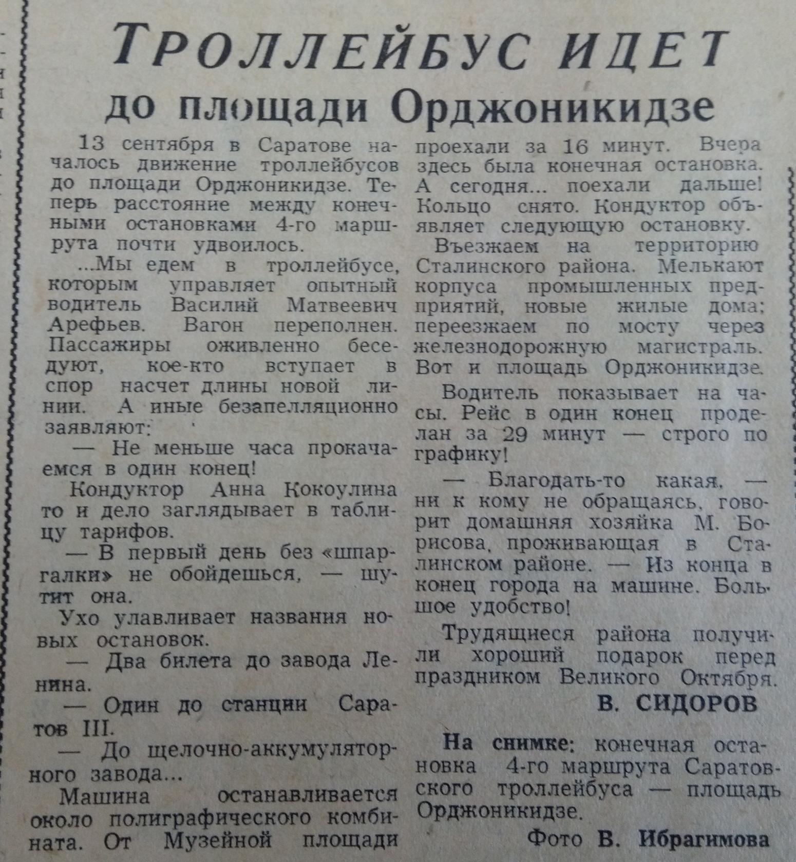 Сегодня исполняется 70 лет с момента запуска первого троллейбусного маршрута в Саратове.