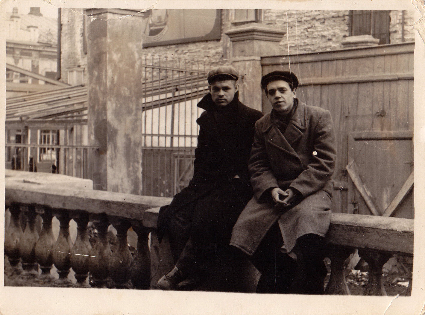 Ребята сидят на балюстраде собора, но это уже кинотеатр "Пионер", фотограф стоит лицом к проспекту.