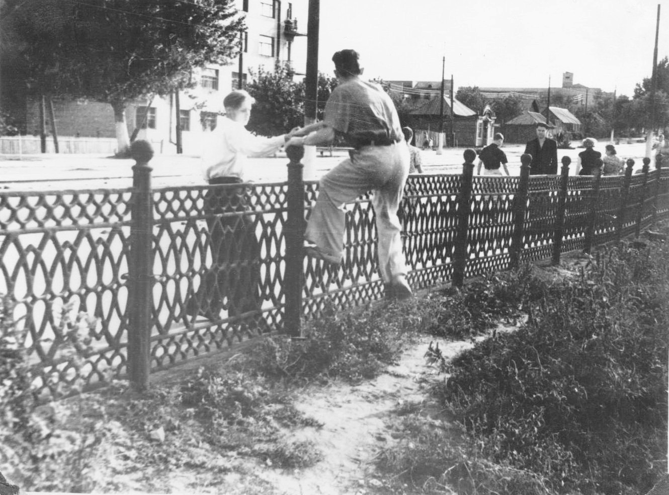 Чего только не бывает. На фото человек в пиджаке - мой отец Николаев Владислав Константинович 1929 года рождения, умер в 2003 году. Проработал на авиационном заводе почти 50 лет конструктором. Жили мы на Энтузиастов 2, напротив бани до 1959 года, когда получили 2-х комнатную хрущевку на 4-ом жил/уч-ке. Наверно попал в кадр при возвращении с работы. Так что верхнюю границу можно понизить до 1959 года.