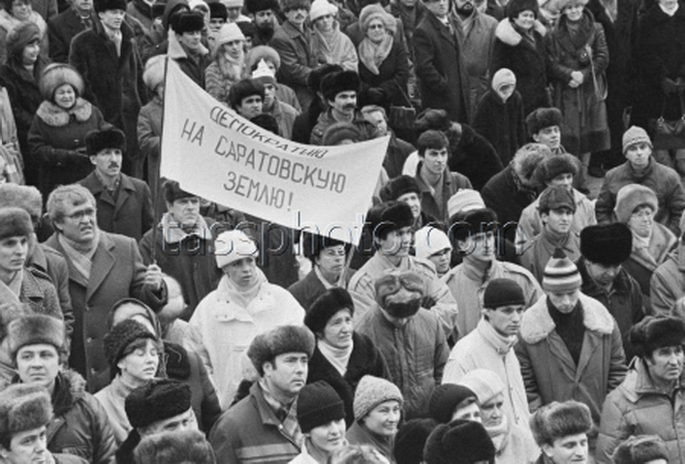 Фотография Ю.В. Набатова: Жители г. Саратова, собравшиеся на несанкционированный митинг у института «Гражданпроект» 11 февраля 1990 г.