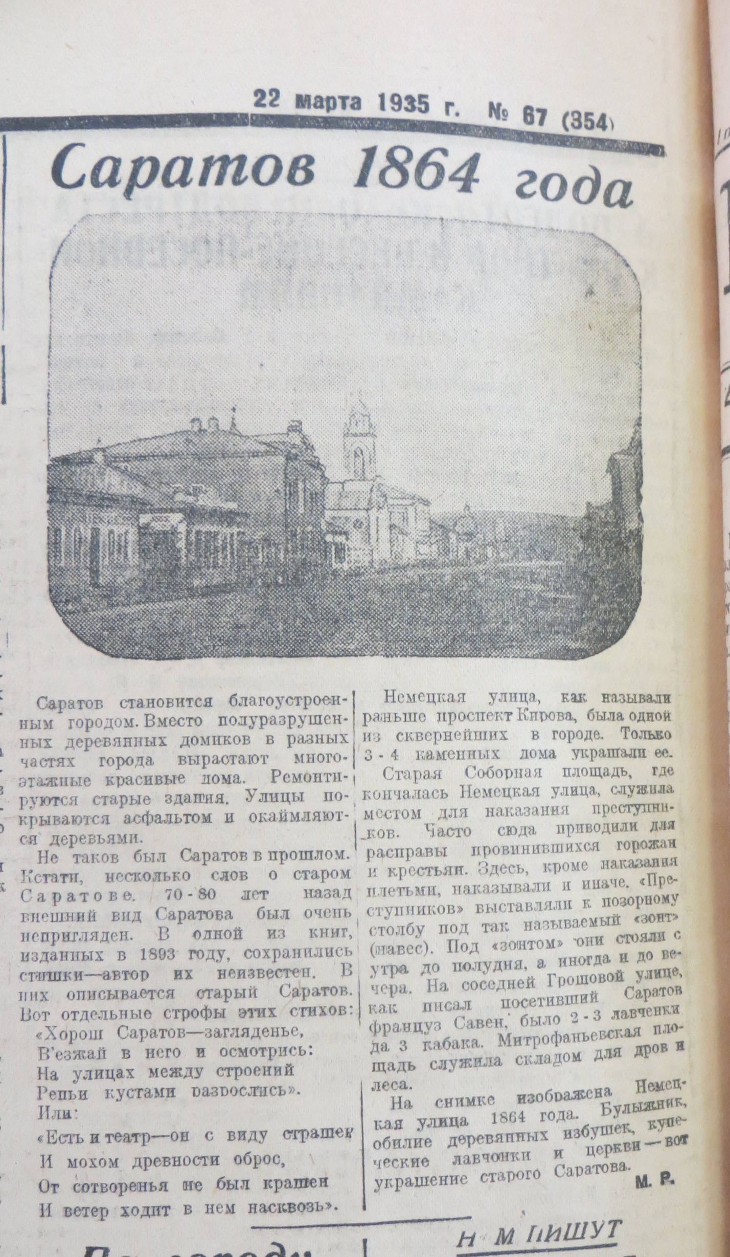 Саратов 1864 года. "Коммунист", 22 марта 1935 г.