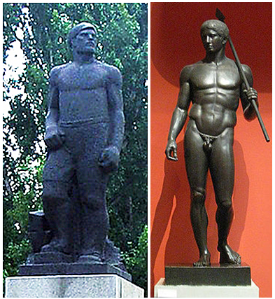 Убрал добавленный кем-то тег Конструктивизм (в данном случае - не в тему, хотя есть и примеры взаимного влияния стилей). Это один из последних всплесков советского кубизма. Соглашусь, пожалуй, с мнением, что постамент интереснее самого памятника. В то время кубизм уже подвергался резкой критике. Постамент - это место, где скульптор мог еще себе позволить упражнение в кубистическом стиле. В скульптуре – практически уже нет, скульптура - фантазия на античную тему. Фигура рабочего - зеркально отраженный Дорифор (Копьеносец) Поликтета.