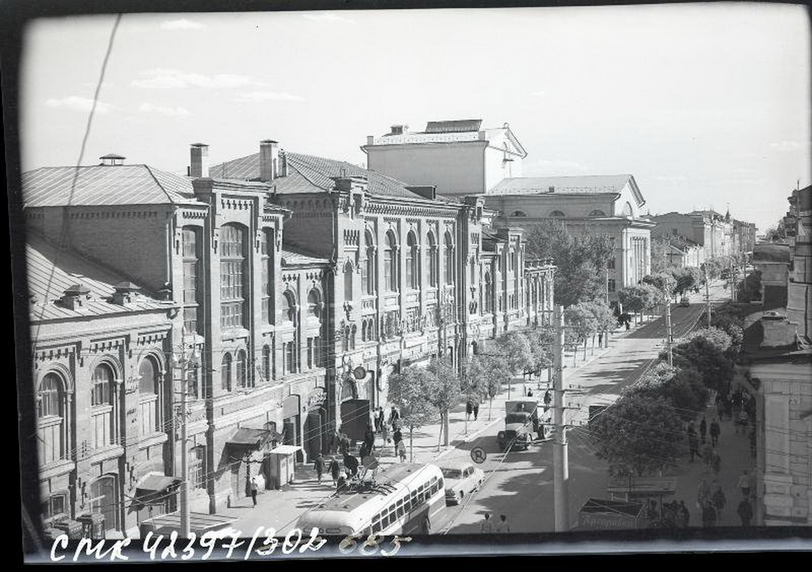 Судя по фотографии театр оперы и балета уже перестроен и приобрёл совй современный вид, а строительных лесов на здании нет, а дата окончания перестройки здания - май 1962 года. Поэтому предлагаю датировку фотографии промежутком между 1962-1973 годами.