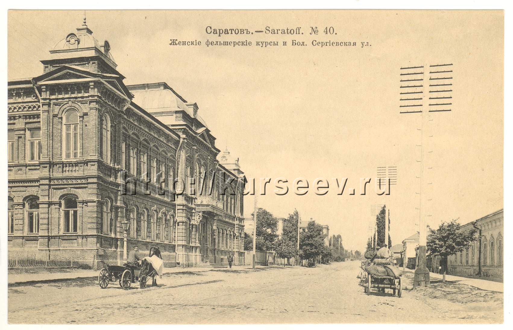 В этом здании открылась повивально-фельдшерская школа в 1900 году.С 1909 по 1913 в этом здании был медицинский факультет Императорского университета.Нигде я не нашёл курсы по этому адресу,они были на Московской.Возможно в здании были и курсы какое - то время.Но строилось дание школы.И на других фотографиях сайта они называются то курсами,то школой.Всё - так это Фельдшерскаяшкола.Значит 1900-1909.