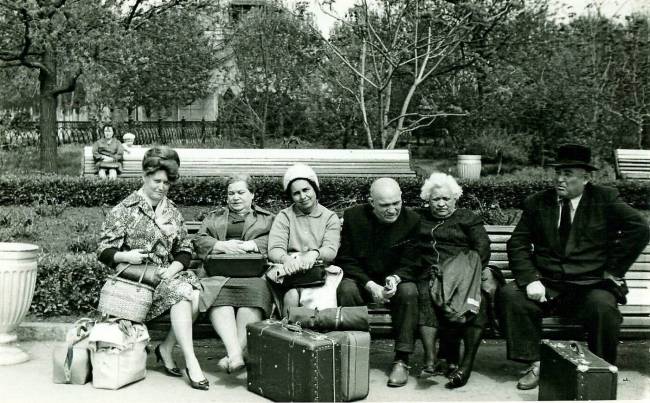Саратов ли? Довольно большой сквер, очень длинные скамейки, сзади какое-то интересное здание с характерным треугольным козырьком над входом, которое у меня как-то ни с чем не ассоцируется... Урны такие в 1968 у нас еще сохранились?