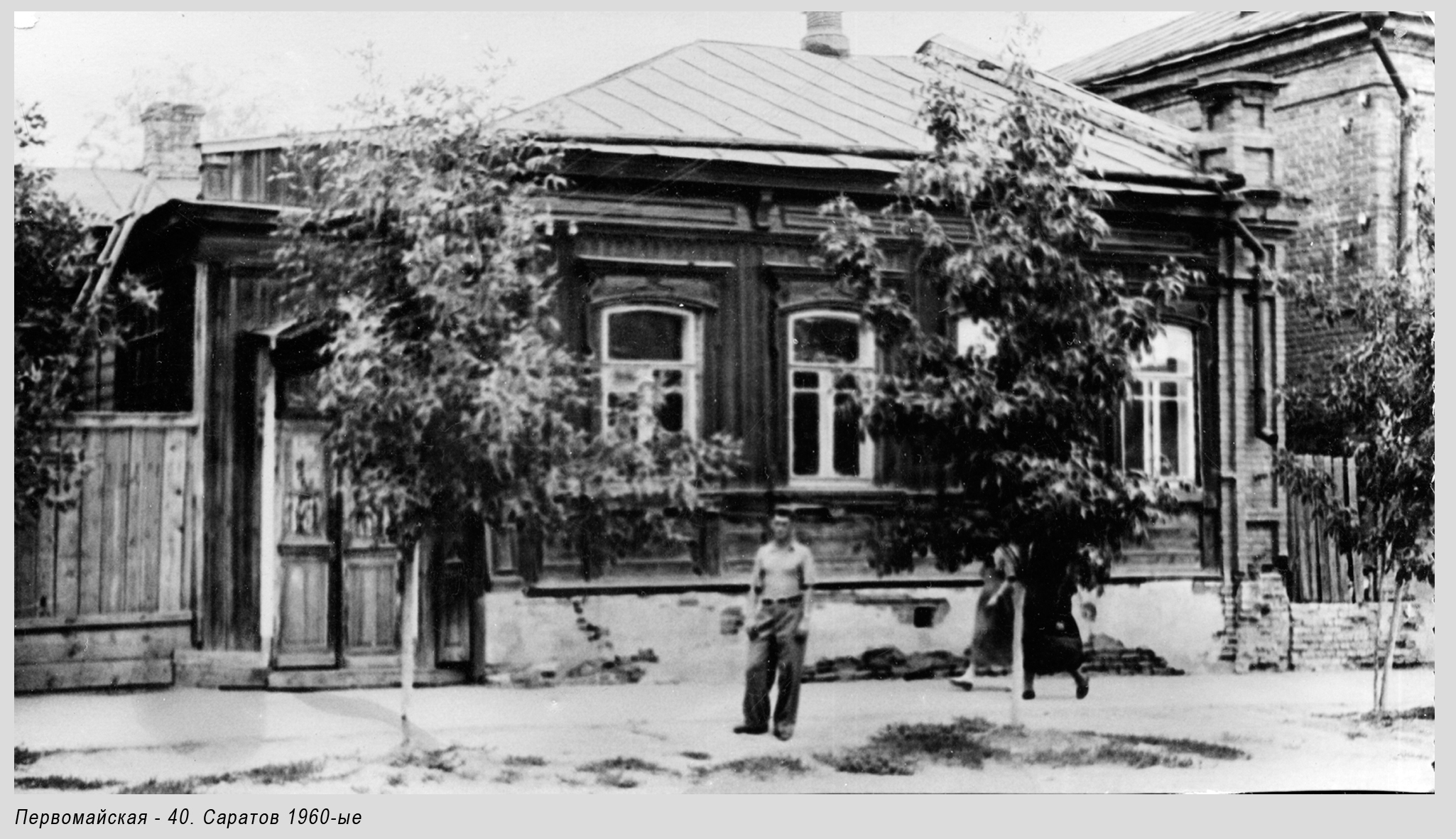 Дом на Первомайской, 40. Юридический адрес у нас был: Октябрьская, 40, а фактически, по Первомайской номер был тоже - 40-ой. Дверь, выходящая на улицу, (её видно на фото) как правило, была заперта, выходили через двор на Октябрьскую. А эта дверь называлась - парадная. Уже ближе к 80-ым, я позволяла себе заявить: "Я пойду через парадную! Закрой за мной!" Возвращаться приходилось через двор. Внутри двора было еще четыре дома, адрес у всех был один - Октябрьская - 40, только квартиры разные. Снимал, скорее всего мой отец - Михайлов Александр Николаевич. В ГАСО нашла сведения, что возможно, этот дом принадлежал мещанам Азаровым - фонд 428.1.526: "... от родной бабки нашей, вдовы Саратовского мещанина Евдокии Ивановны Азаровой по купчей крепости, утвержденной 1886 года." Азаровы были родственники Наумовых по материнской линии. Эти сведения мне помог отыскать Вячеслав Иванович Давыдов.
