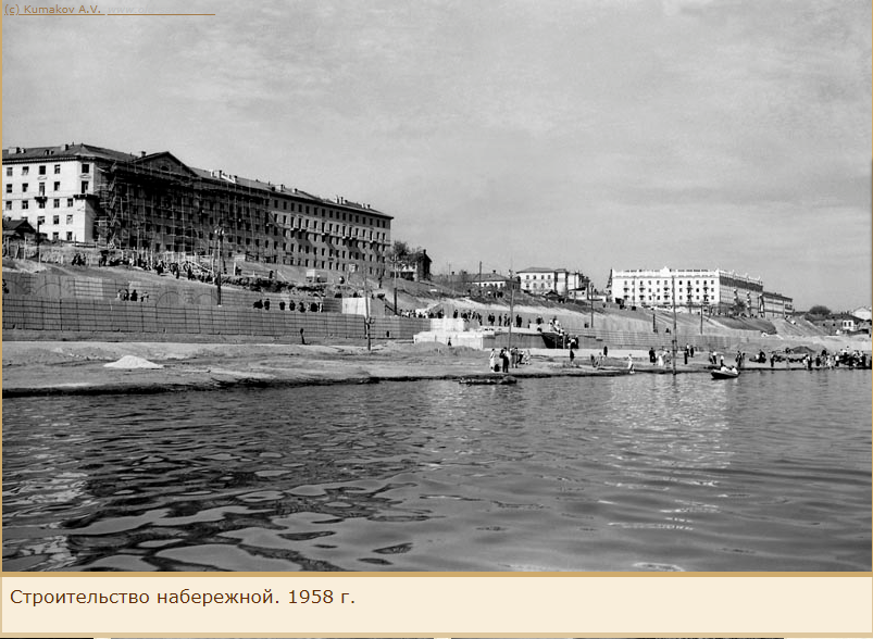 Виктор ошибается! Он намного моложе меня , и не знает как начиналось строительство Набережной! Посмотрите комментарии к моим снимкам, в одном из этих домов , кажется во втором от угла получил квартиру отец моей одноклассницы на 4-м этаже ! Это было в 57 году!