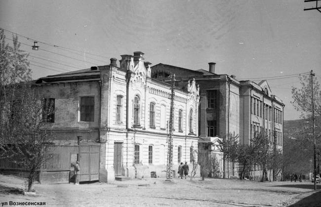 В доме со ставнями на углу вознесенской/челюскинцев кажется было что-то от зооветеренарного иститута. Почему-то в памяти так отложилось