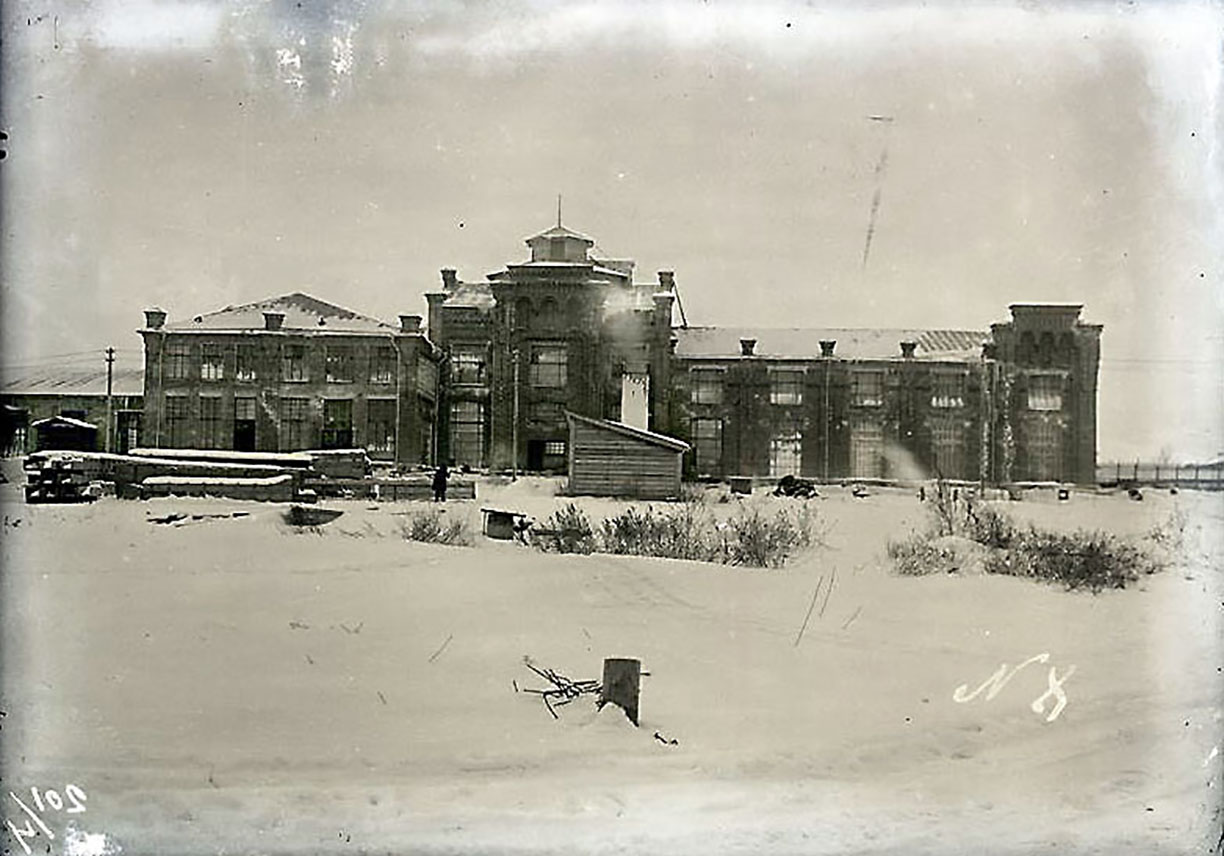 Здание общежития (или цеха, переделанного в общежитие) практически повторяет архитектуру этого корпуса.