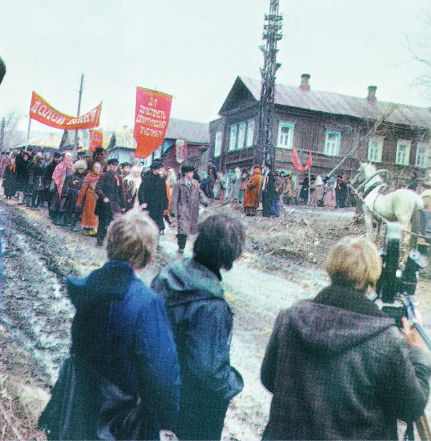 Это фото со съёмок многосерийного художественного фильма "Хлеб - имя существительное". Эти же кадры в одной из серий есть (перед митингом, на котором выступает персонаж Булдакова).