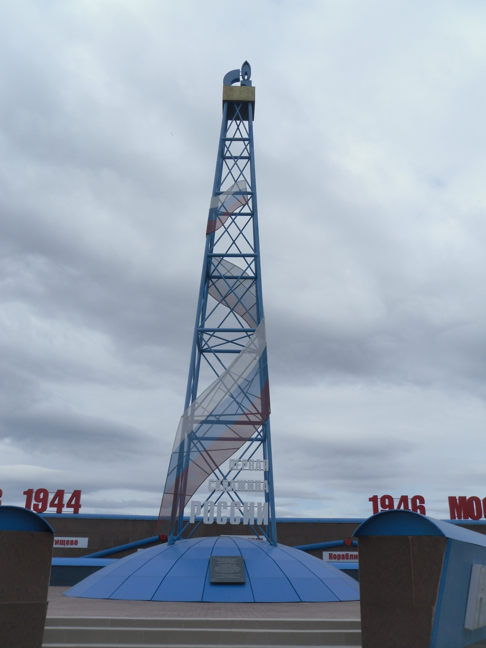 Монумент, сооружённый на месте скважины-первооткрывательницы нефтегазового месторождения в Саратовской области.