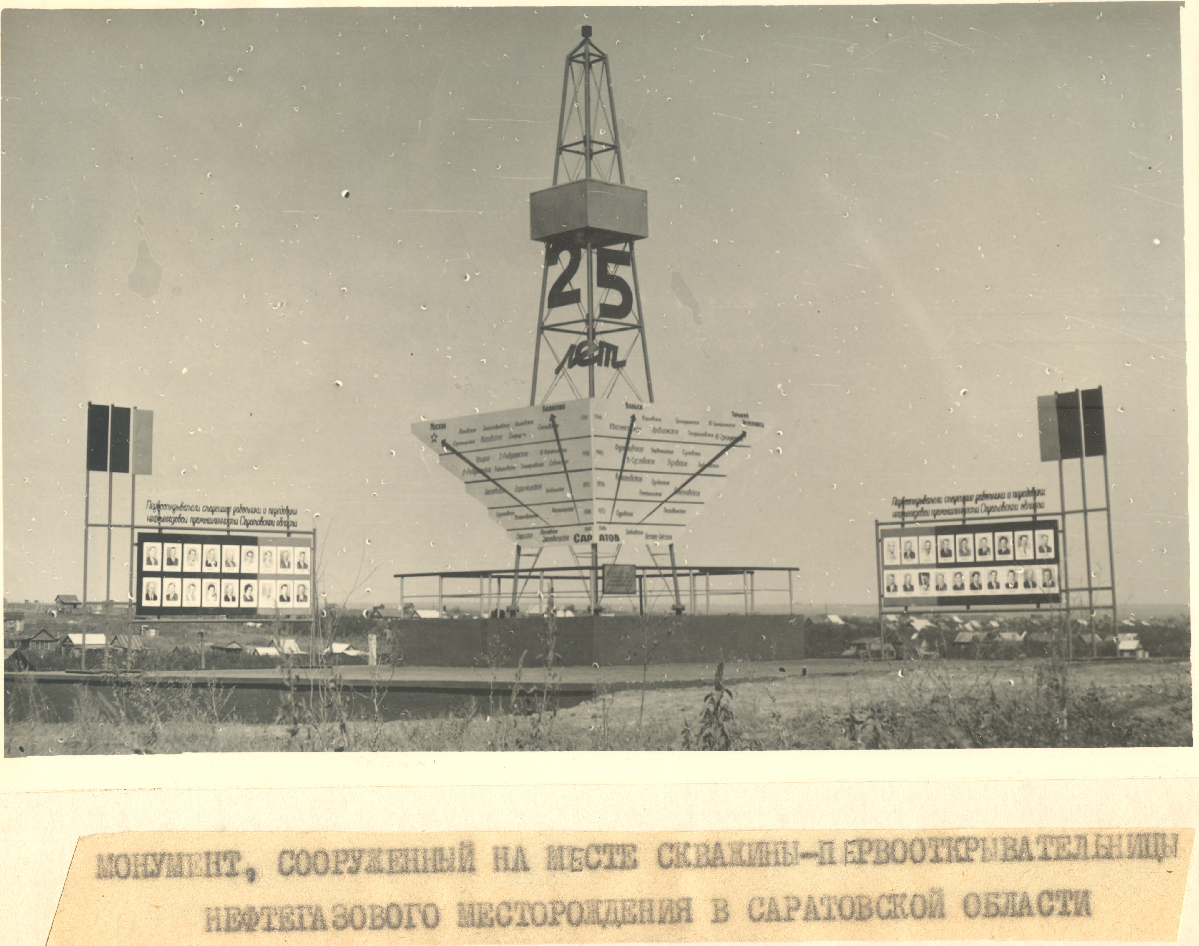 Памятник 25 лет первой газовой скважине в Елшанке. 1966 г.