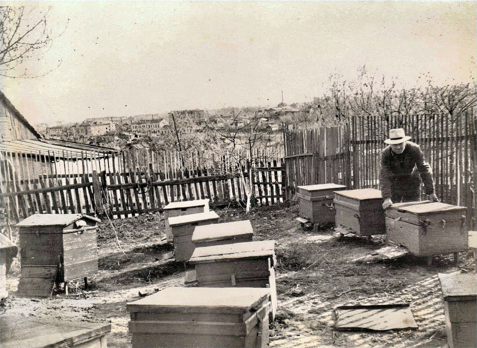 Есть еще одно фото двора и ульев с пчелами, но более позднее, но виден забор соседей, который "жив" и являлся "границей" между участками . Фотограф Пащенко А.В. Вероятно весна 1968 года.