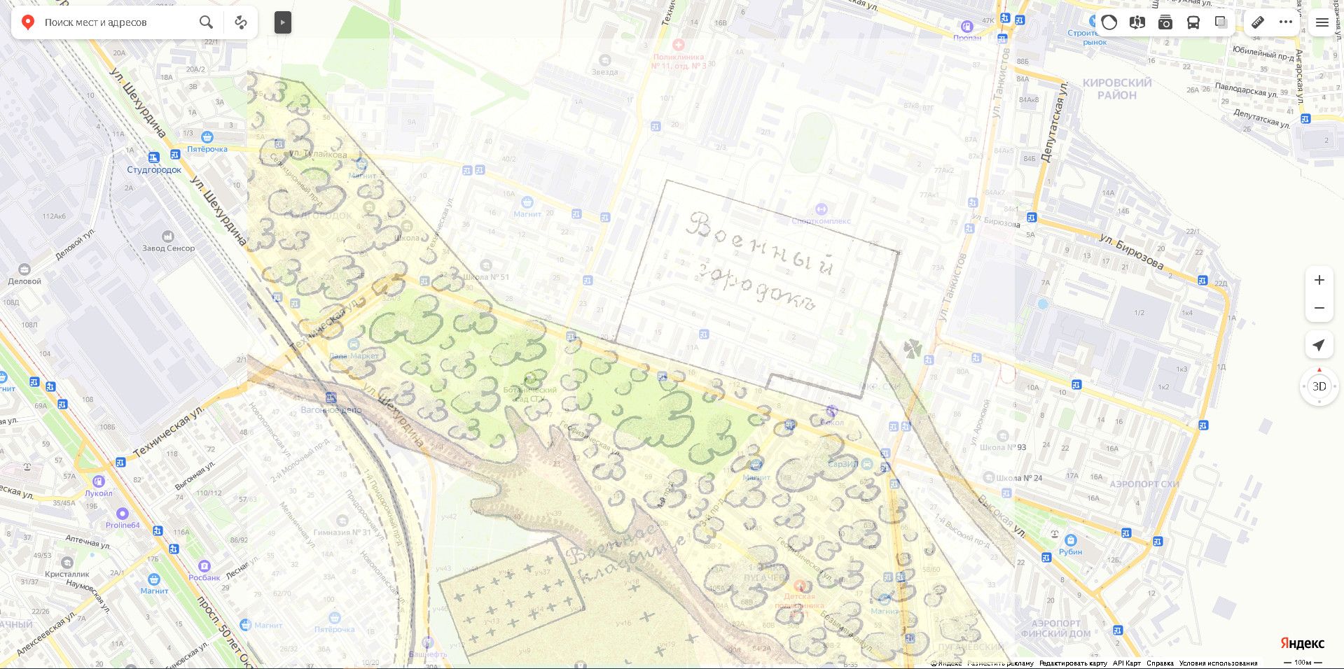2) Ваше наложение тоже неверно. У вас получается половина военного городка на склоне ботанического сада, что совершенно невозможно.