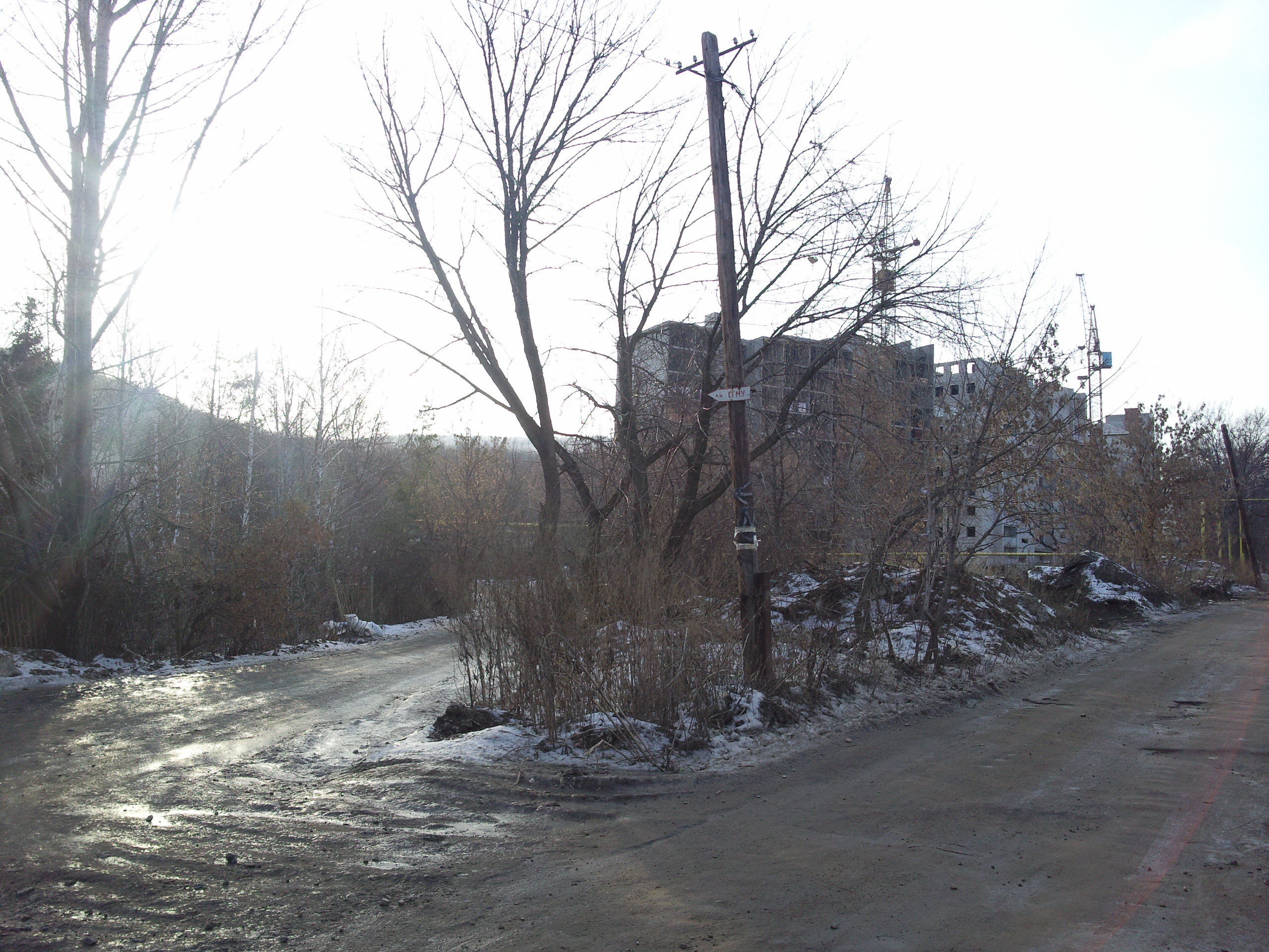 Это место за пансионатом "Сокол", ныне "Лесная республика". В 2001-2002 годах все эти базы уже заросшие и заброшенные были. Те столбы, что на фото - на моем (2010 год) тоже есть, но у меня снято под другим углом. Сейчас там, где на фото столбы - дорога. Место съемки, по моему разумению, здесь.