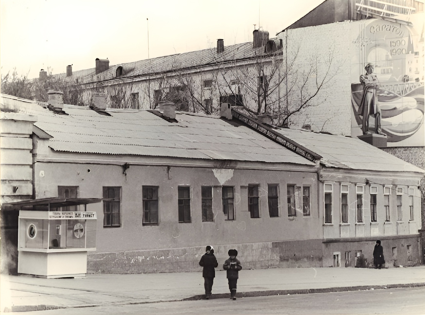 Почему 90-й, если в источнике 80-е (под вопросом)? Плакат там был как минимум с конца 84-го: https://oldsaratov.ru/photo/19090.