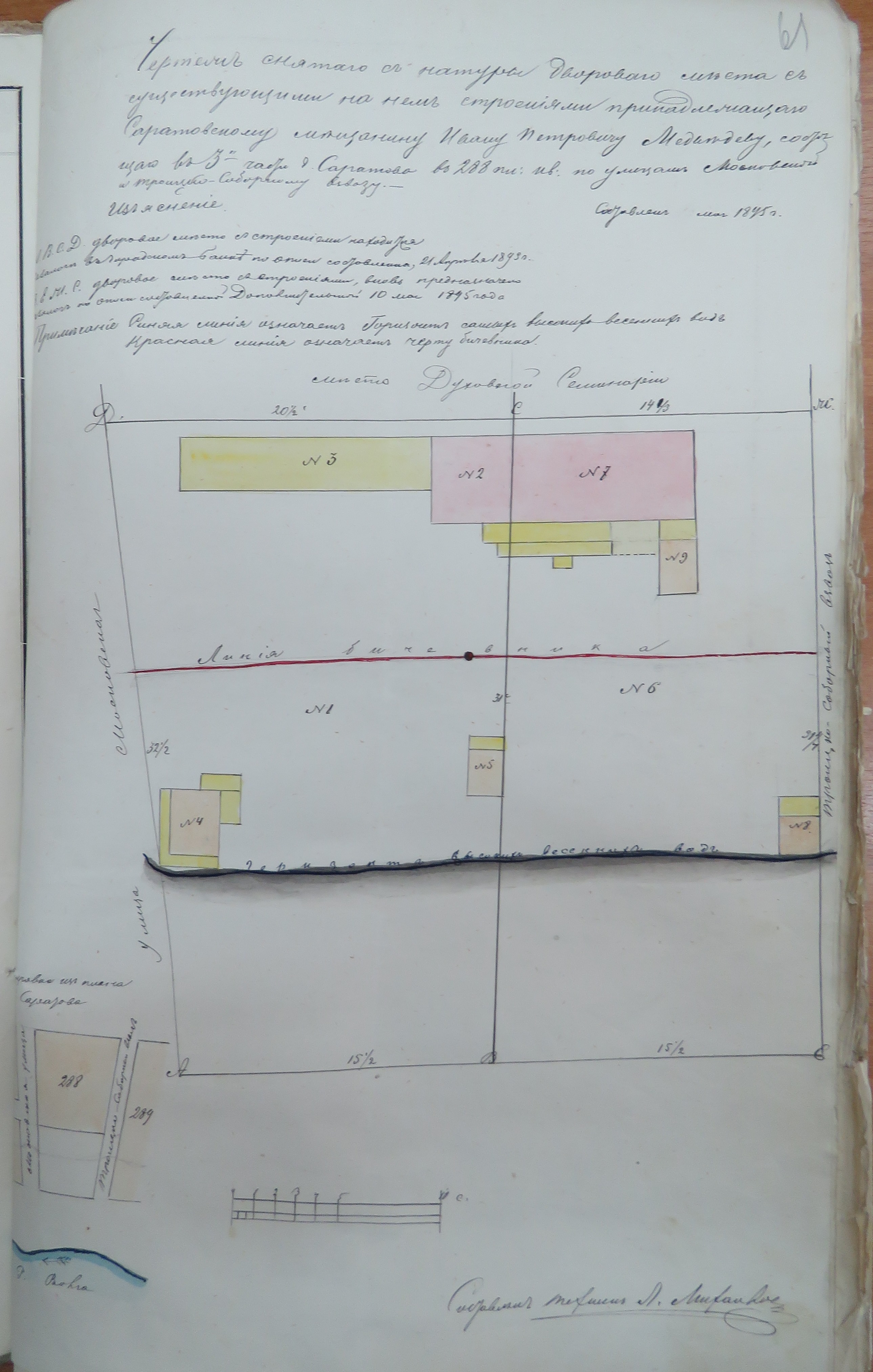 На этой открытке хорошо видно домовладение саратовского мещанина Медведева Ивана Петровича, расположенное на огромном участке между Московской улицей и Троицко-Соборным взвозом от земельногоучастка занятого духовной семинарией до линии уреза воды: