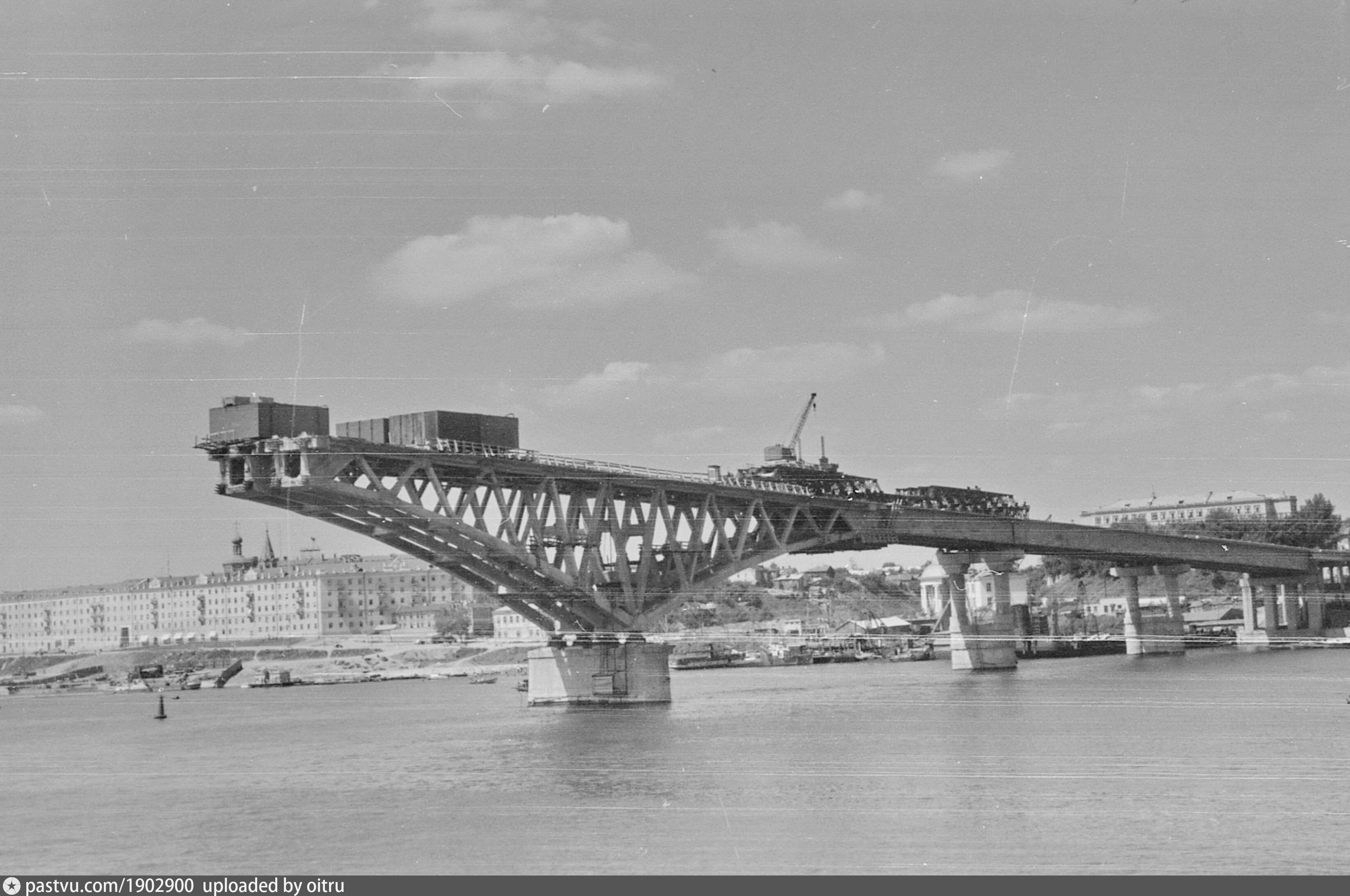 На всех трех фотографиях этой серии про строительство моста середина лета (июль-август) 1964 года.