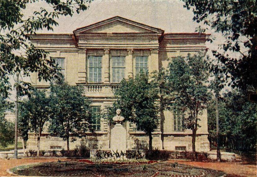 Данная ч/б открытка вышла в наборе 1960 года, даты поправил. А цветной вариант (соседний кадр) выпускался в наборе 1955 года и отдельно выложен на сайте тут - http://oldsaratov.ru/photo/byust-radishcheva-pered-muzeem . Автор обоих фото - М. Альперт.