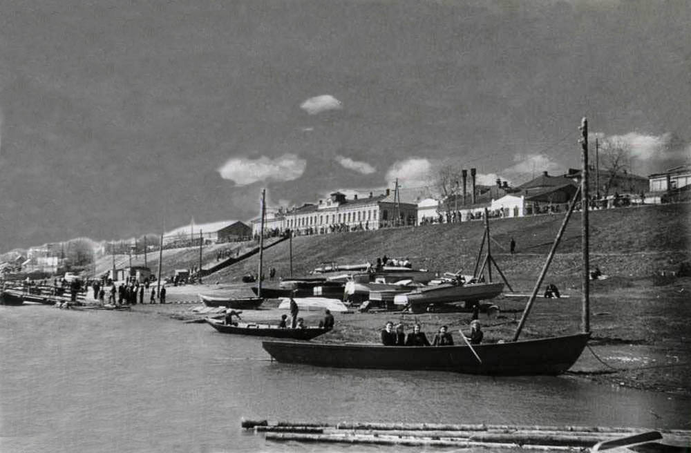 Если судить по катерам и лодкам,состоянию берега,я бы предложил 1953-1957 годы.