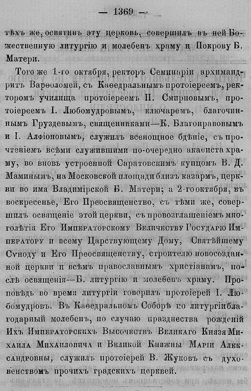 Господа, ознакомившись с материалами по Киновии на сайте, понял, что дата освящения этой церкви неизвестна - по одним данным это 1860 , по другим - 1866 гг. Позвольте внести уточнение в этот вопрос. Киновийская церковь была освящена в субботу 1 октября (с. ст.) 1866 г. на праздник Покрова Б. М. Файлы прилагаю.