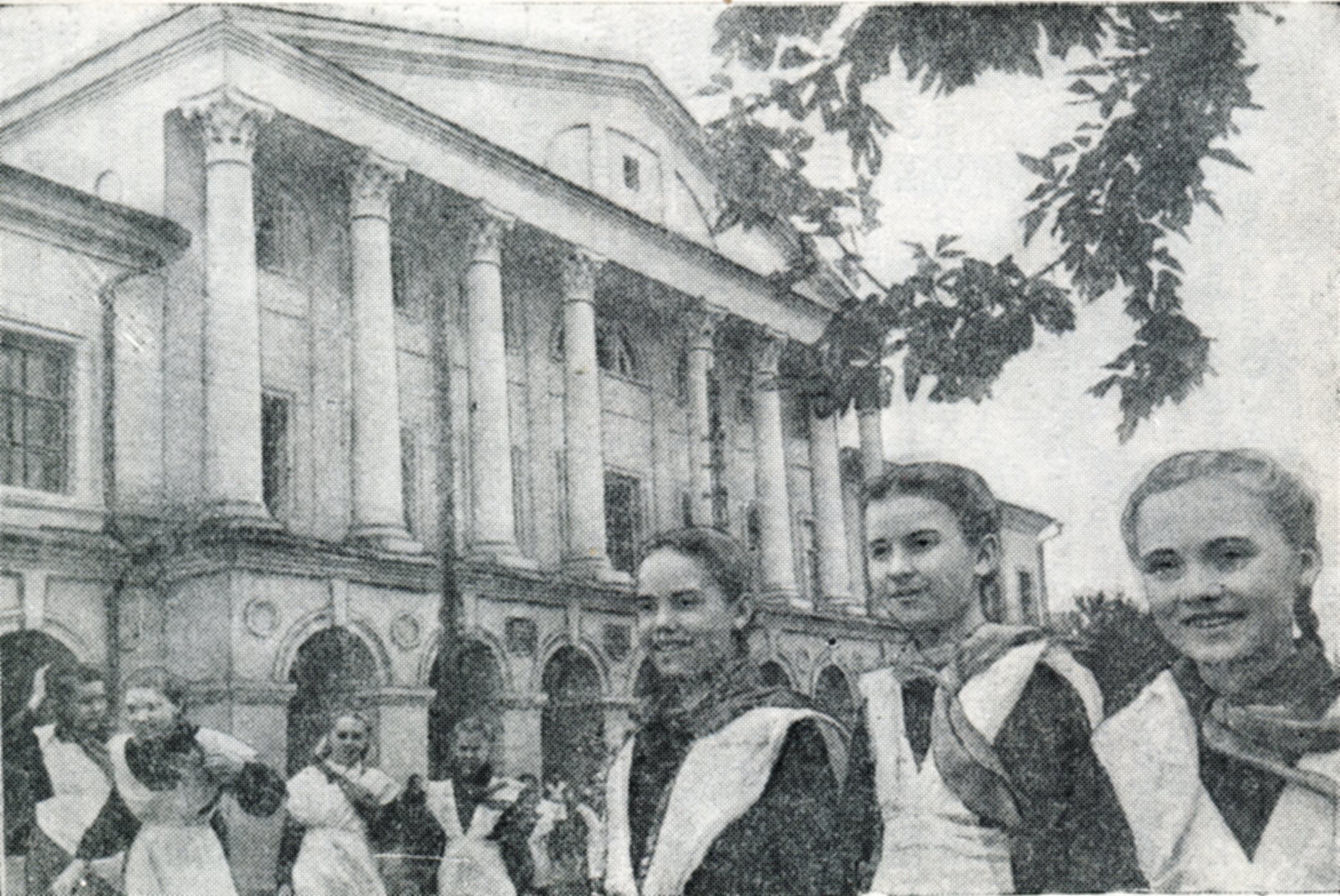 Бывшая духовная семинария, в которой учился Н.Г. Чернышевский. В дополнительных вырезка из газеты "Коммунист" (1951)