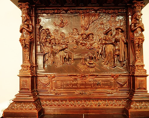 Там есть ещё один роскошный камин с рельефом и душевной подписью:„Wer nicht liebt Wein, Weib, Gesang, derbleibtein Narrsein Lebenlang“ – «Кто не любит вино, женщин и пение, тот на всю жизнь останется дураком». Фразу приписывают Мартину Лютеру..