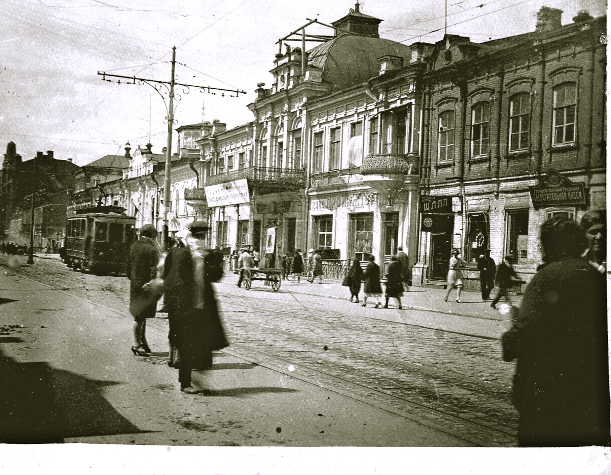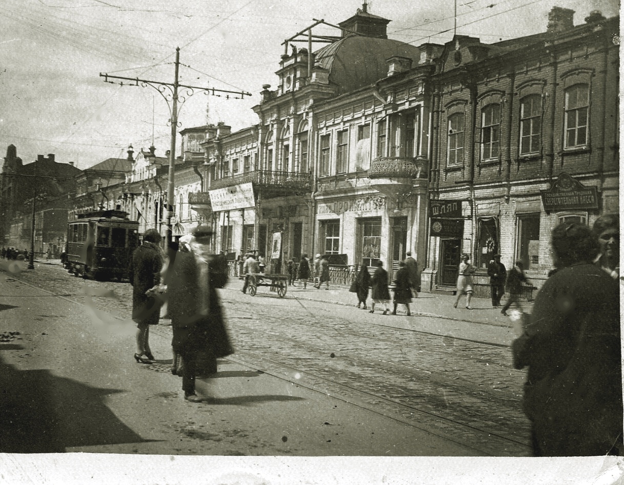 Отличное фото! Надпись, очевидно, сделана позже, поскольку Кирова проспект стал только в 1935, но и на фото не 1918: государственные трудовые сберегательные кассы появились только в 1923, да и трамвай в годы гражданской войны не ходил. Насчет верхней даты сказать сложно, но мода вроде 20-х годов.