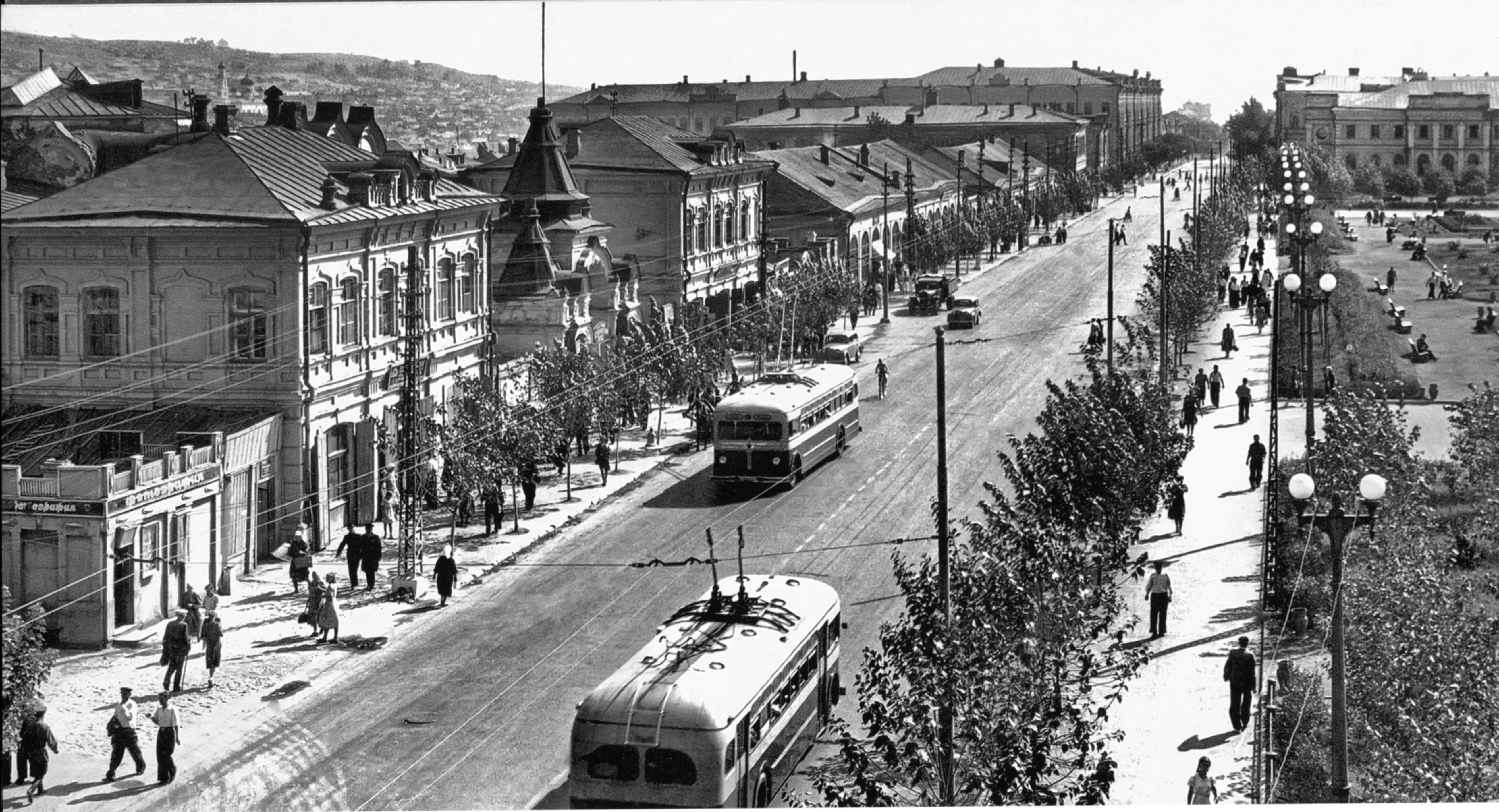 "Фотография" на фотографии ;) Троллейбус пустили 7 ноября 1952, а здесь явно весна-лето, так что на годик можно нижнюю дату поднять.