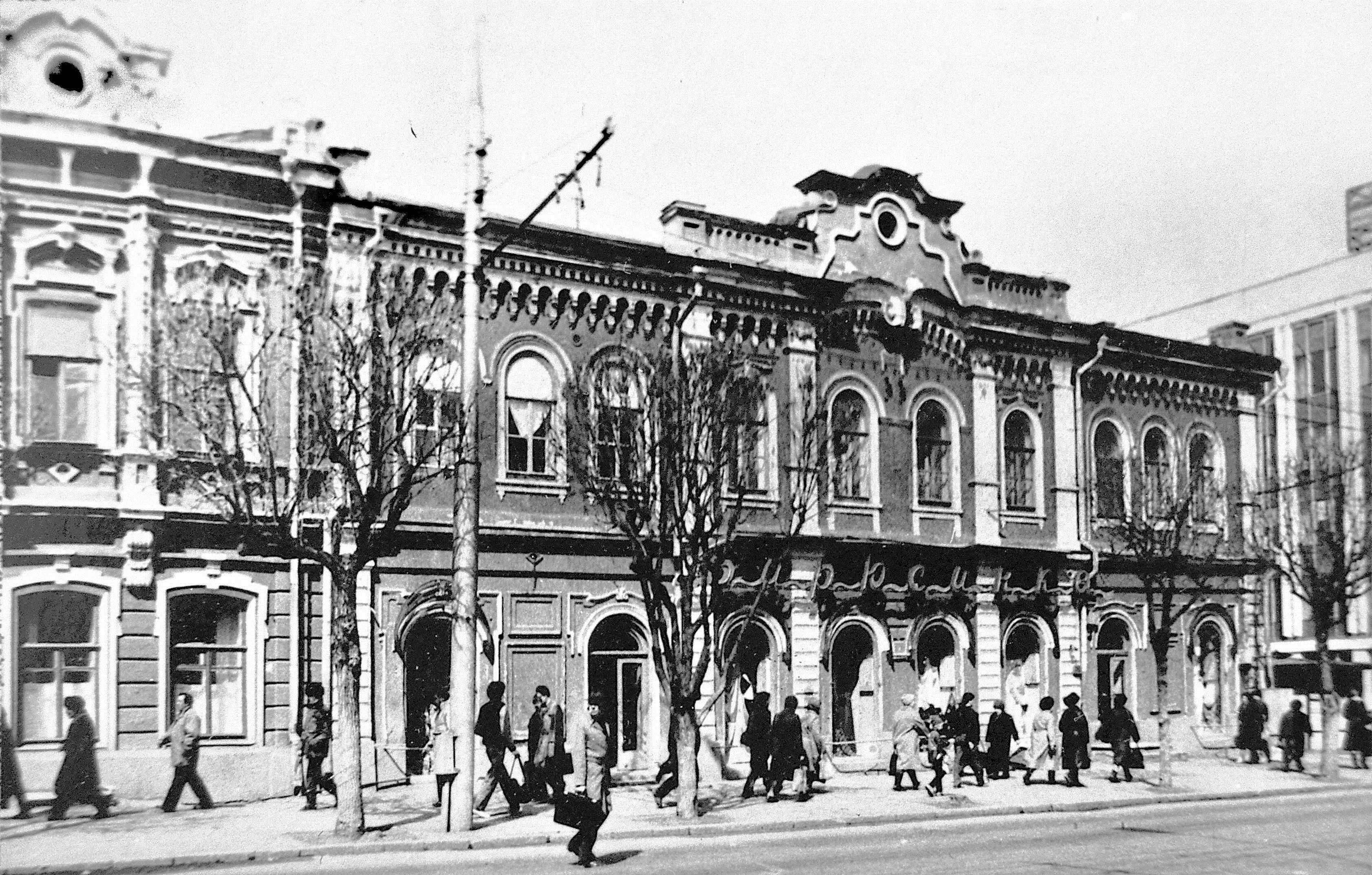 Поставил верхней границей 1988 год, поскольку в этом году была выпущена книга "Саратов исчезнувший и сохранившийся". К недавнему спору о том, был ли магазин тканей в этом доме(http://www.oldsaratov.ru/photo/gde-eto-84#comments). Теперь на 200% это стало очевидно всем, что был. Мужики, в этом вопросе доверяйте женщинам, они в тканях лучше разбираются. Так что, Smil была права изначально. Сам отлично помню книжный магазин там, где были "Канцтовары" около дворца пионеров, молочный на Горького, и рядом с молочным, прямо на углу, кажется действительно был магазин тканей, но это было уже в конце 90-х. Название "Бирюсинка" ужасно знакомое, но не помню этого магазина на углу. Кажется ещё на Радищева был магазин тканей, то ли на участке от Волжской до Первомайской, то ли от Первомайской до Московской. А вот на углу Радищева и Московской был магазин фототоваров. Это уже хорошо помню, но когда его закрыли не помню.