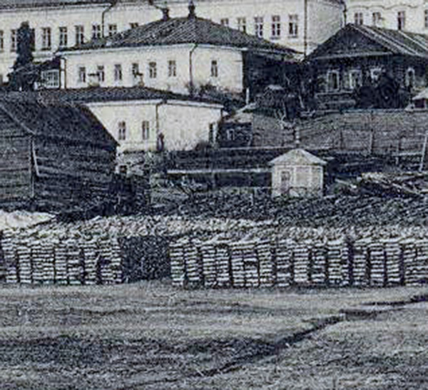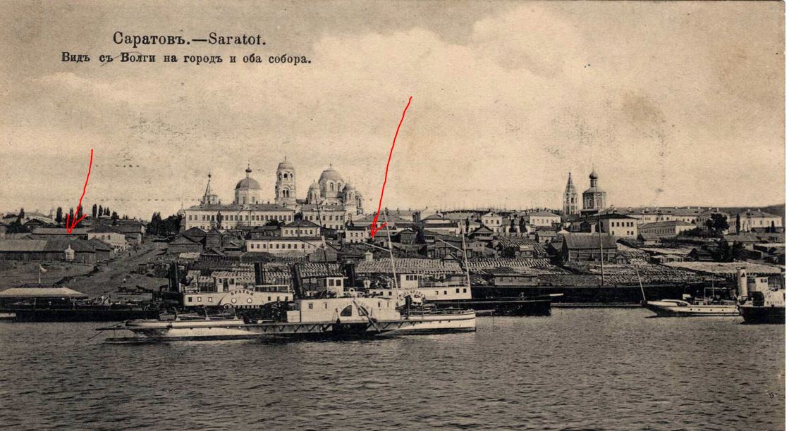 Возможно, вы правы (пусть всплывут ещё фотографии или информация). В пользу «светской» гипотезы говорит парность: когда увидел этот снимок, сразу подумал, что по архитектурным обычаям времени где-то рядом должен быть второй. Так и оказалось. А «прекрасный вид» на Волгу с пригорка загромоздили не сразу.