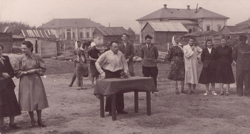 Большая постройка справа - сельская столовая (чайная), в прошлом - магазин.