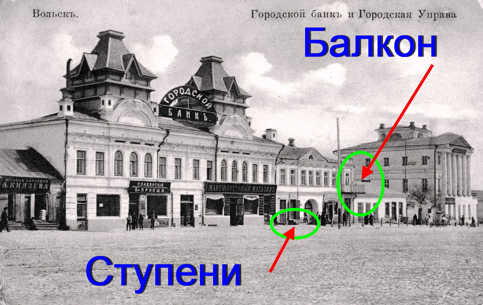 Фото из архива Мещерякова Ю.К. Снимок сделан в начале 60Х годов, когда на магазинах еще были деревянные ставни. Вдали - здание с колоннами-краеведческий музей. В дополнительных - старое фото с балконом и ступенями.
